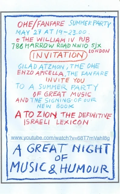 Gilad Atzmon, the OHE, Enzo Apicella and Fanfare Publications invite you to an early summer party. The party will be held at The William IV.