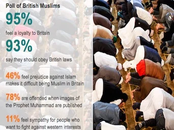 Interestingly enough, yesterday the BBC published a poll that measured British Muslims’ attitude towards Britain. Unlike the majority of Jews who expressed their will to leave Europe, 95% of the Muslims here are “loyal to Britain.”