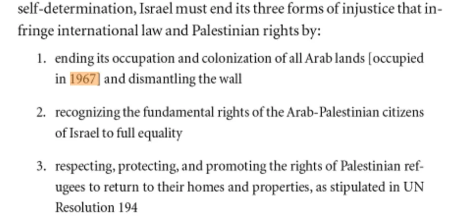 At some point BDS’s primary goal was changed significantly, it now reads: “Ending [its] occupation and colonization of all Arab lands occupied in June 1967 and dismantling the Wall.” (http://www.bdsmovement.net/bdsintro).